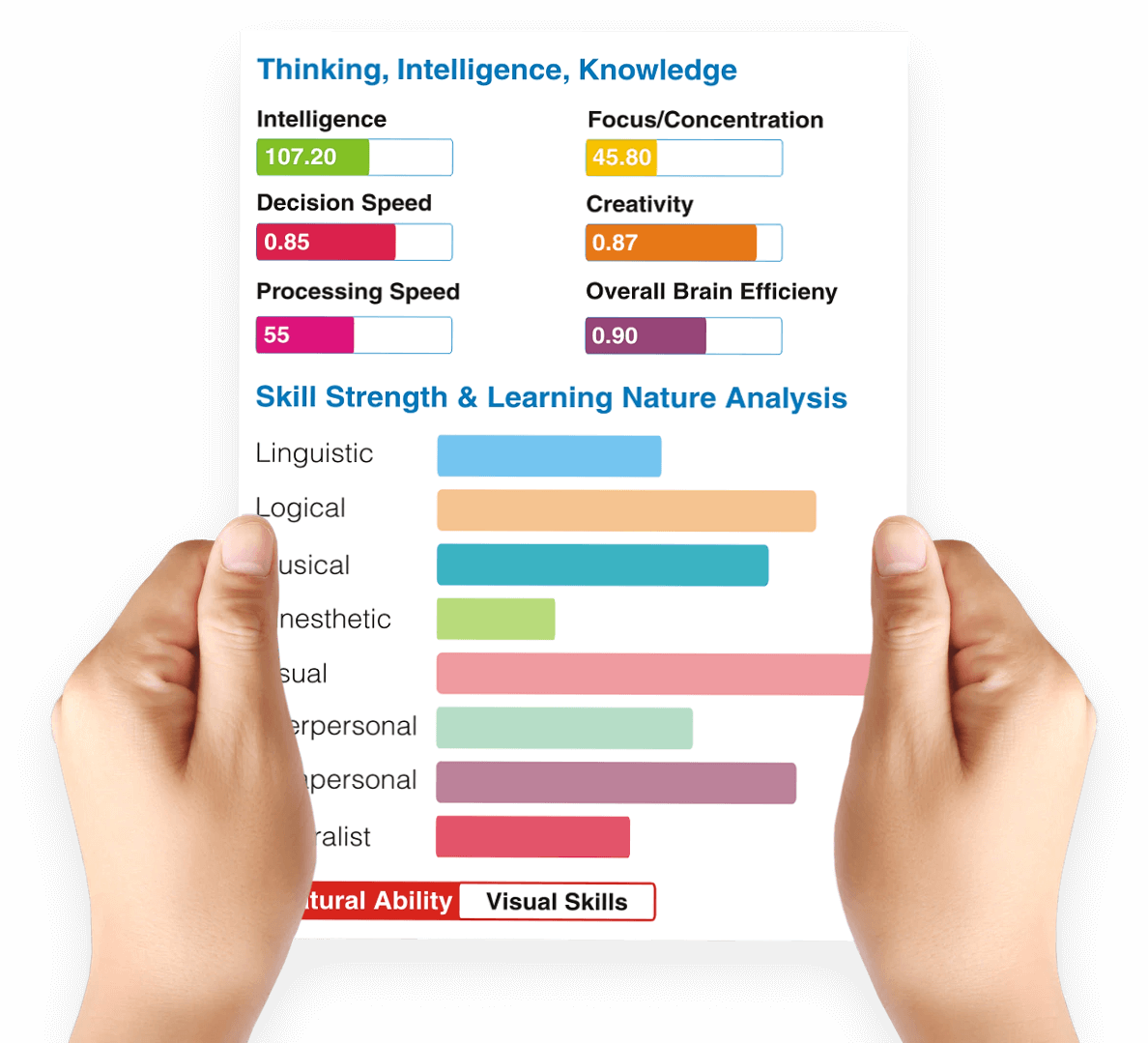 We test a child's mindset, cognitive abilities, strengths & complete learning nature.